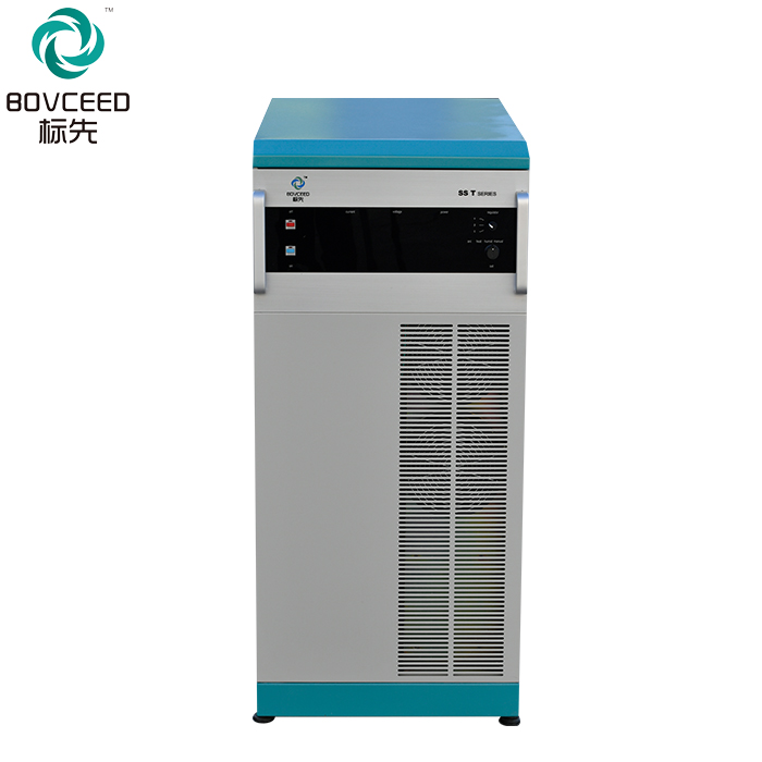 SST系列中频磁控溅射电源工作于二级高频变换模式,交流输出频率40kHz。中频溅射电源以两个溅射靶作为负载,双靶交替工作,因此工作周期内每个溅射靶有一半以上的时间为反向电压,使靶材表面积累电荷充分泄放,有利于抑制靶材弧光放电及表面中毒,特别适用于反应膜层环境使用。 |