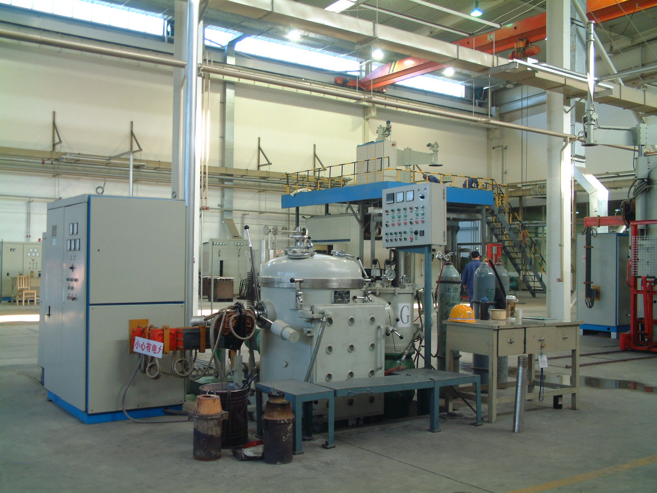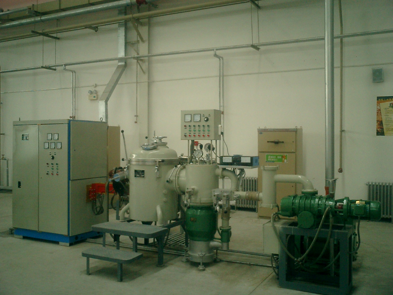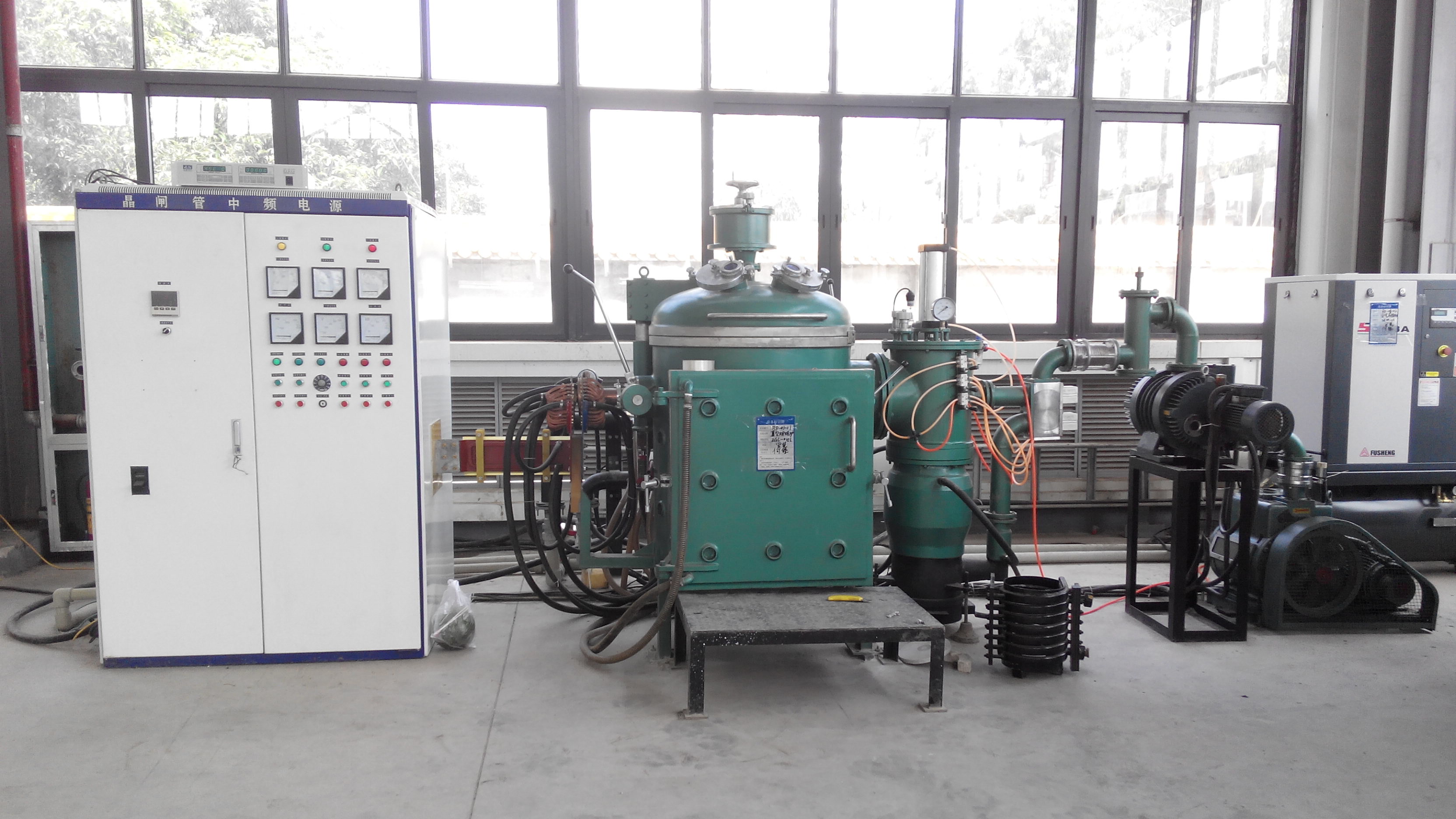 熔炼真空机组:KT-400油扩散泵1台,ZJP-300罗茨泵1台,2XZ-70机械泵1台.