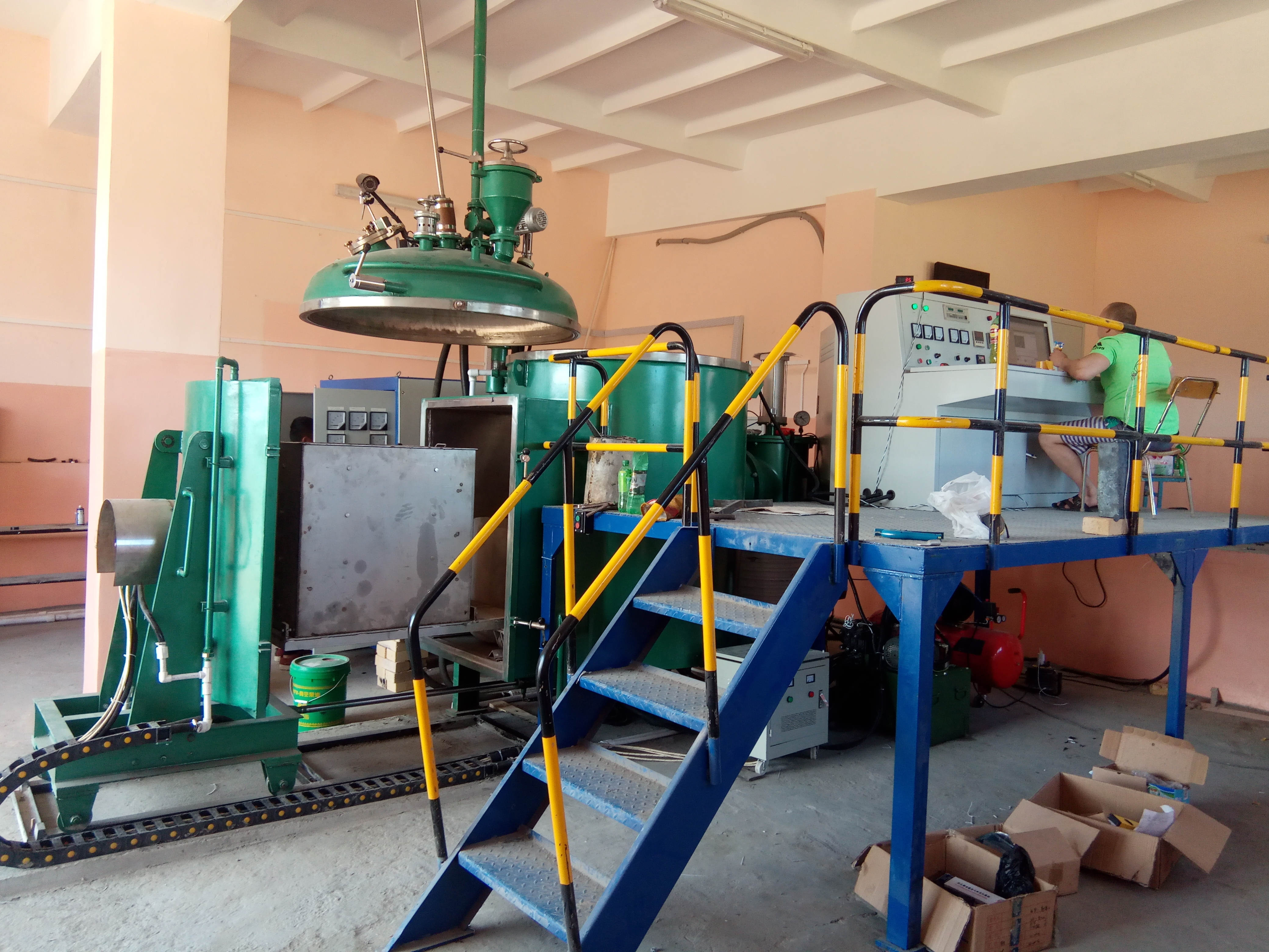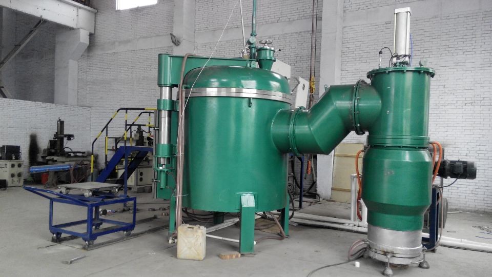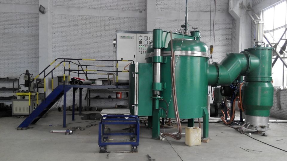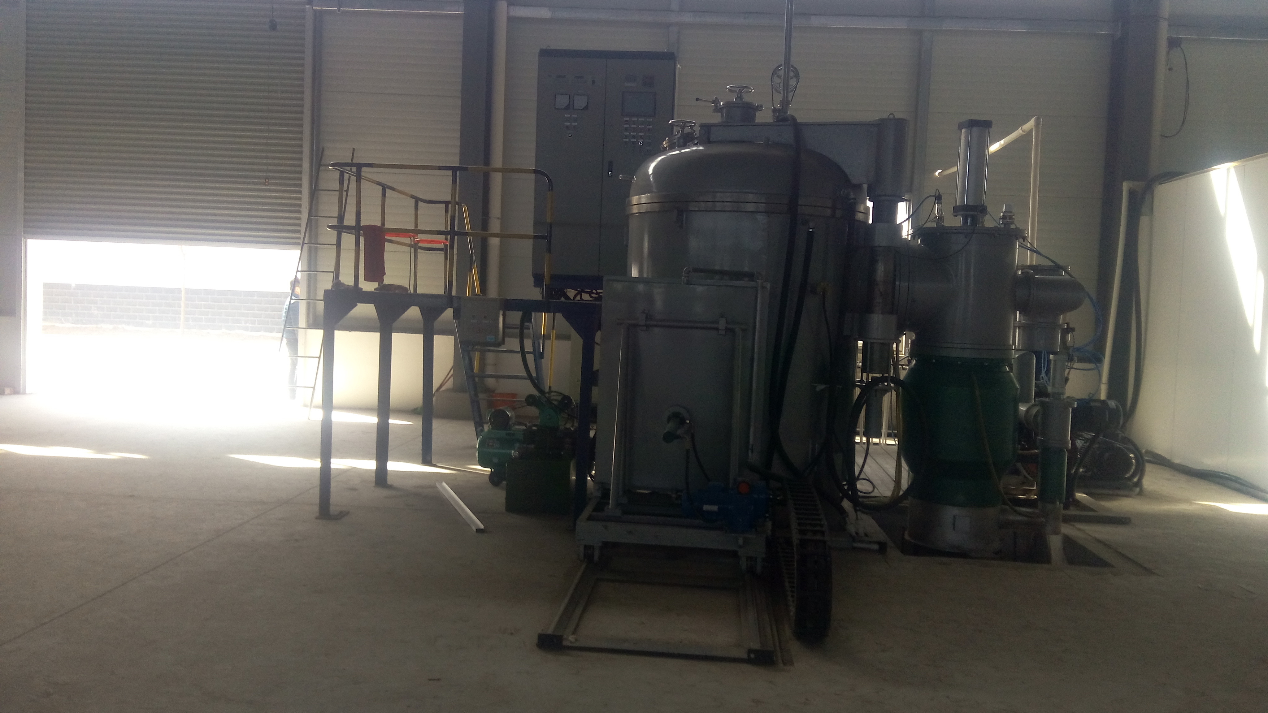 整套设备用于镁锂合金的真空熔炼。由炉盖、炉体、炉门、合金加料装置、测温装置、 手动搅拌装置、中频电源、进电铜轴、液压倾炉浇铸装置、模壳加热炉、离心铸造机、真空机组、真空测量、电气控制系统、闭式冷却塔、分/集水器等构成。