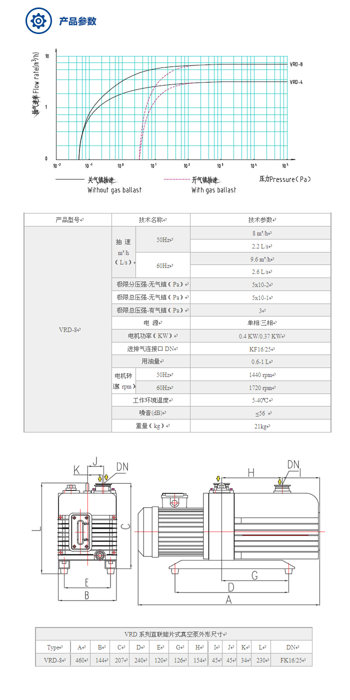 直联泵 VRD-8飞越真空泵 双级旋片真空泵