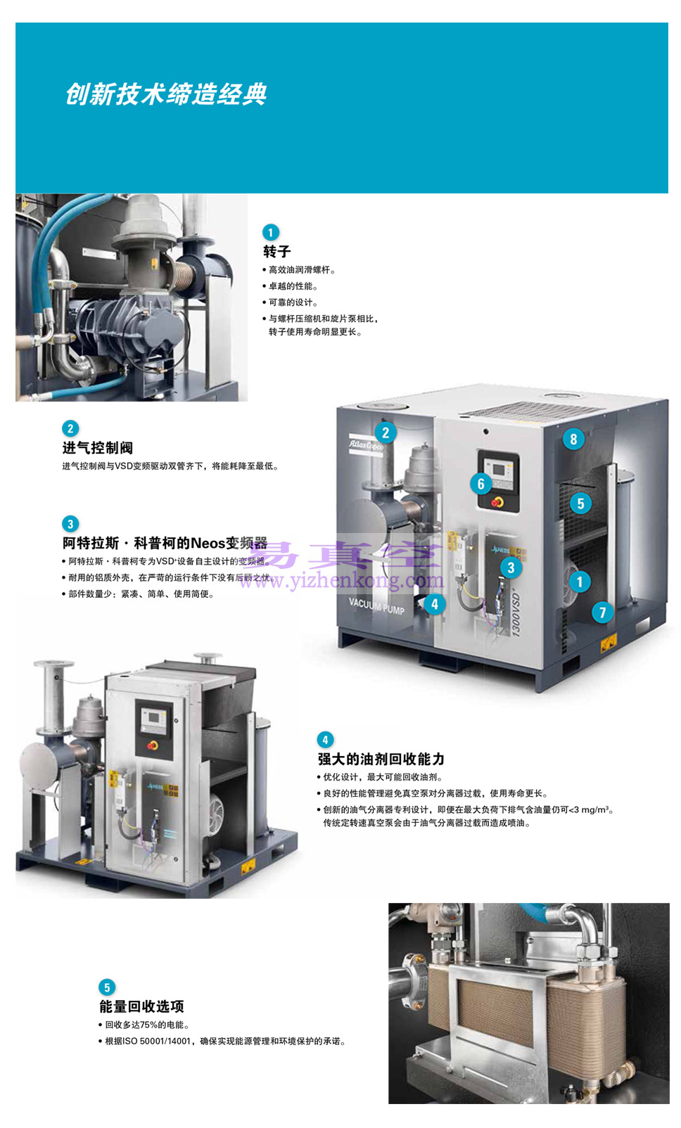 阿特拉斯品牌 GHS VSD+系列是新一代智能型油润滑螺杆式真空泵,配备阿特拉斯.科普柯的变频驱动技术。凭借阿特拉斯.科普柯著名的压缩机即插即用原理设计GHS VSD+系列真空泵可以在您需要的工作压力段轻松实现峰值性能。