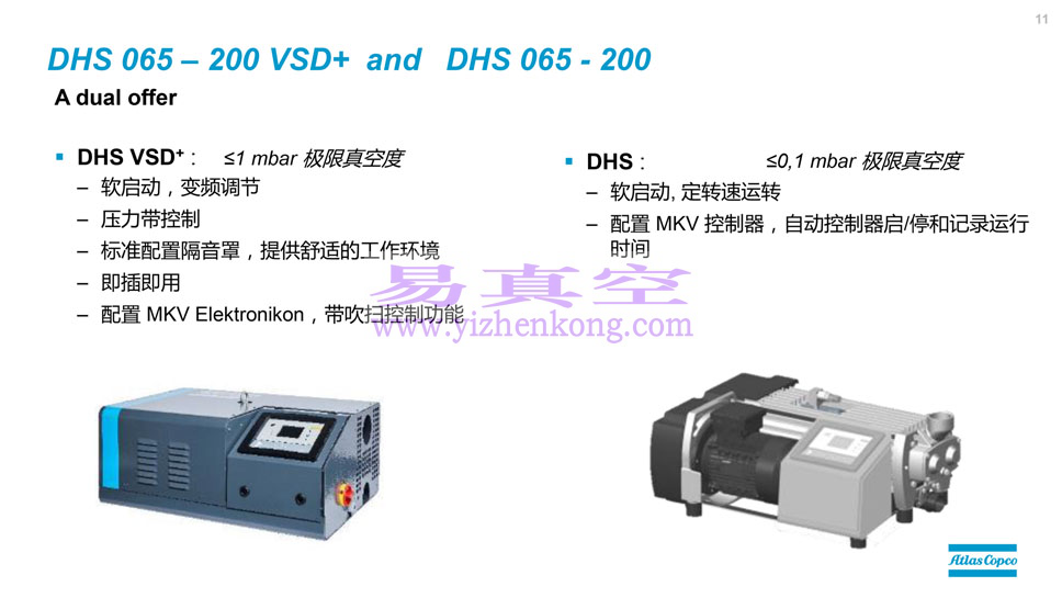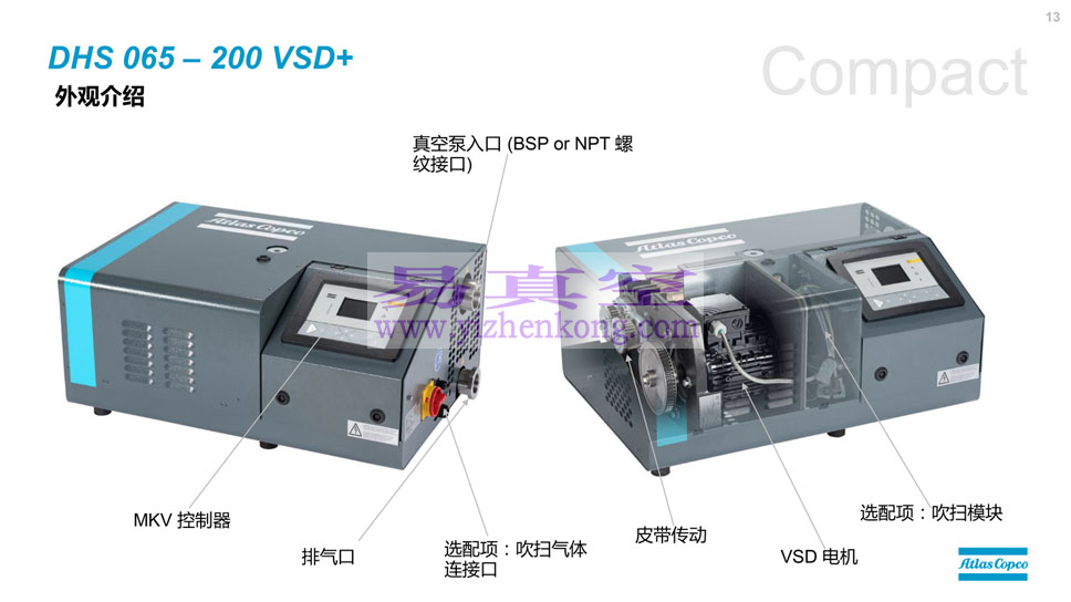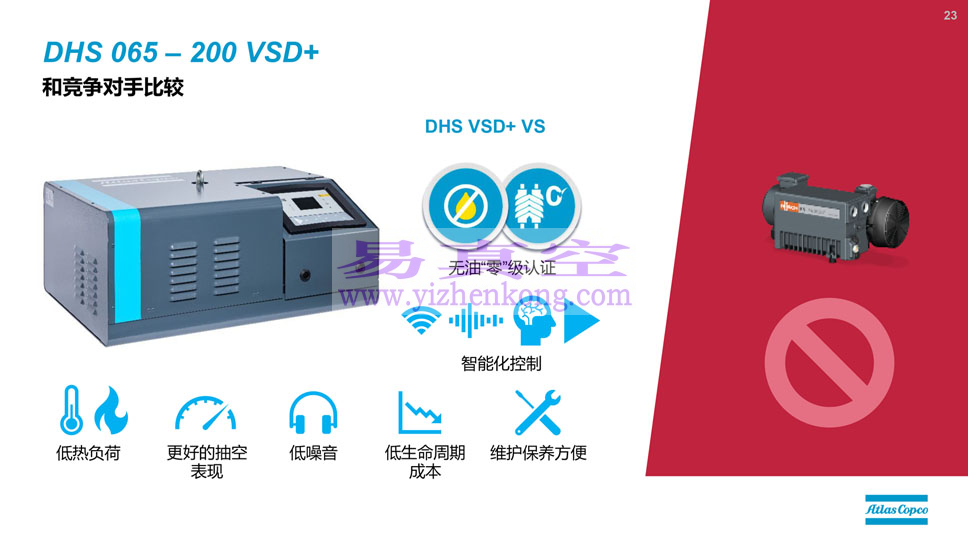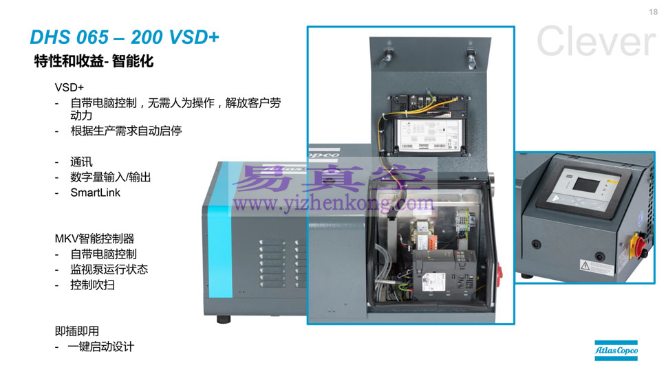 阿特拉斯DHS 065-200VSD+ 干式螺杆真空泵、洁净、紧凑、智能、远程监控能力、效率高、生命周期成本低,
