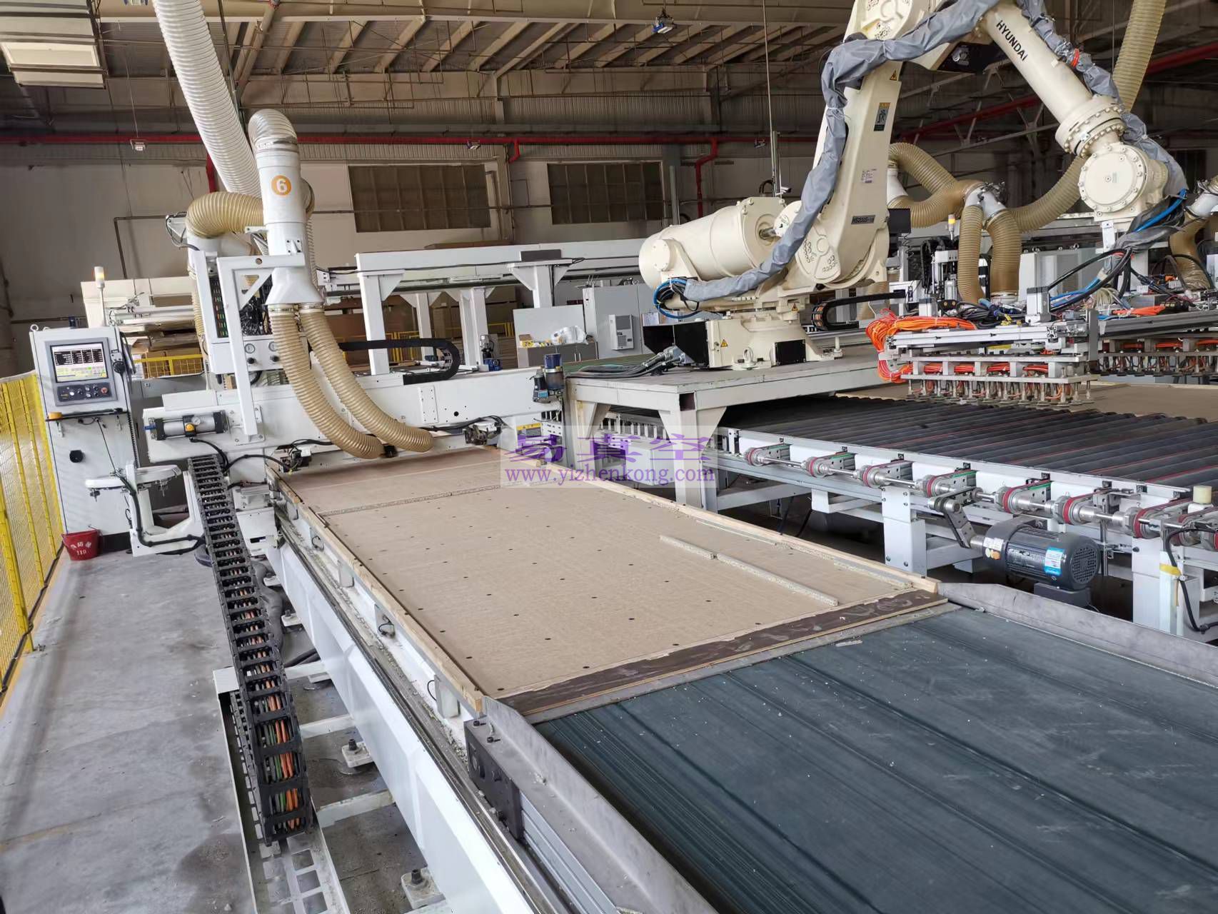 2、木工机台,用密度板做平台,同时做吸附平台。真空吸附,是通过密度板吸附板材,进行切割。