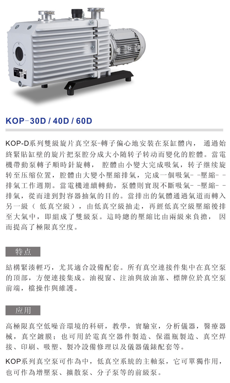 KVAC凯威科KOP-30D/40D/60D双级旋片式真空泵 双级油旋片真空泵生产厂家