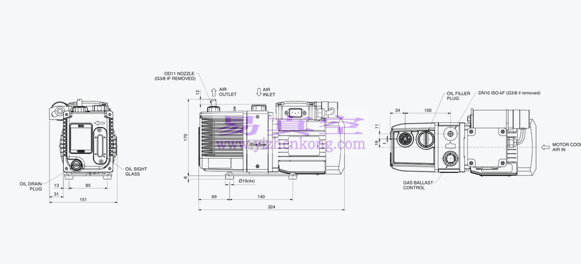 这种直联式旋片泵结构紧凑、无振动,具有防手指受伤的风扇和外壳,保护操作人员。同时,附件供应使该产品可应用于各种真空应用中。
