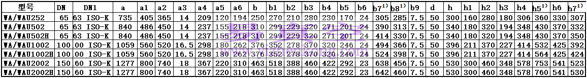 单位 | JYP WAU152 | JYP WAU252 | JYP WA/WAU502 | JYP WAU1002 | JYP WAU2002 |